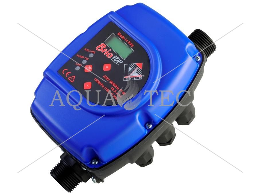 Brio Top – это электронное устройство управления для однофазных электронасосов, позволяющее автоматически включать и останавливать насос, защищая его в том случае, если возникают неподходящие условия для работы (отсутствие воды, перегрузка двигателя, опасность возникновения льда).